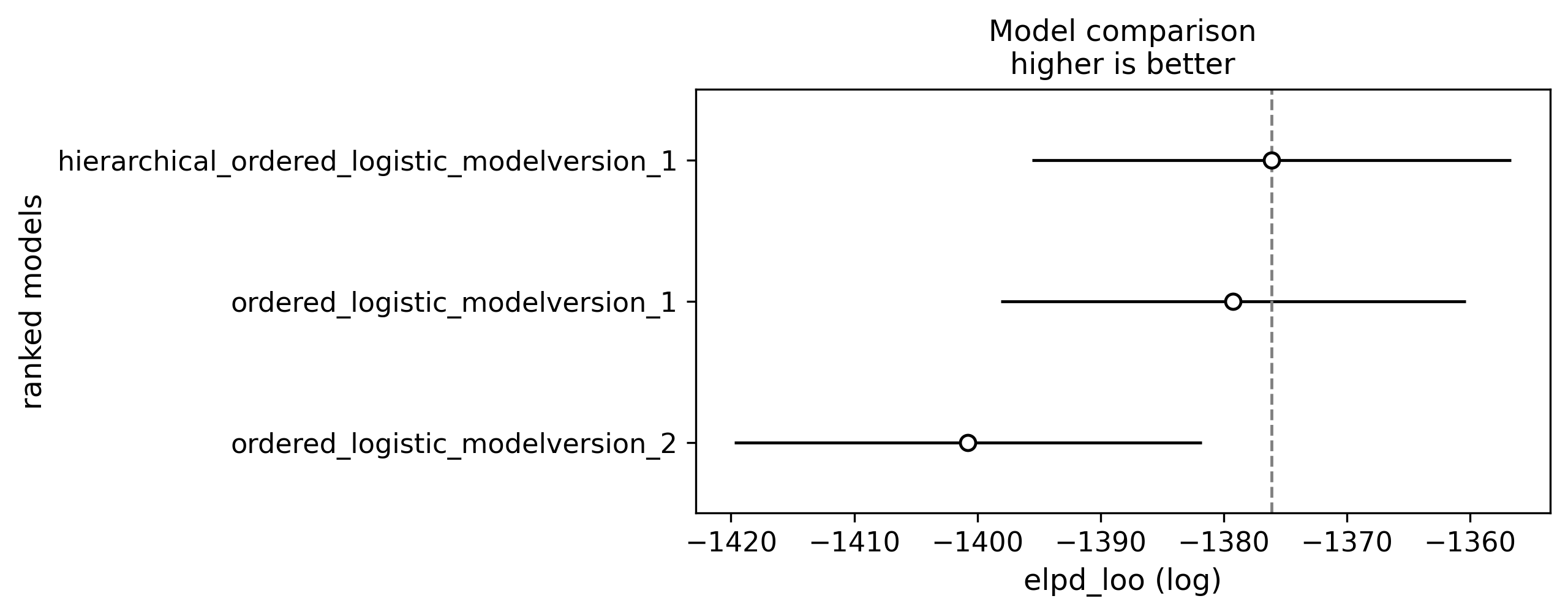 These examples demonstrate how to analyse ordinal evaluation data with skewed distributions using ordered logistic regression models. Located in examples/skewed_score/, they showcase custom model implementations and specialised visualisations for ordinal outcomes.