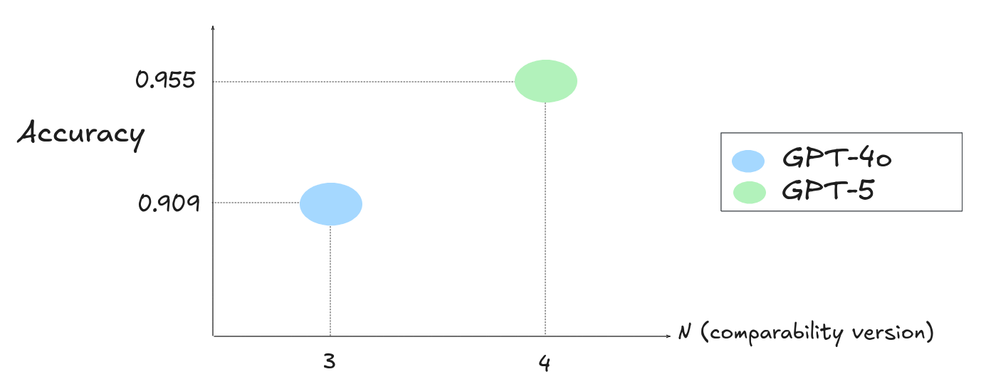 stderr 0.06Both GPT-4o and GPT-5 are now evaluated at comparability version 4, making the results directly comparable.